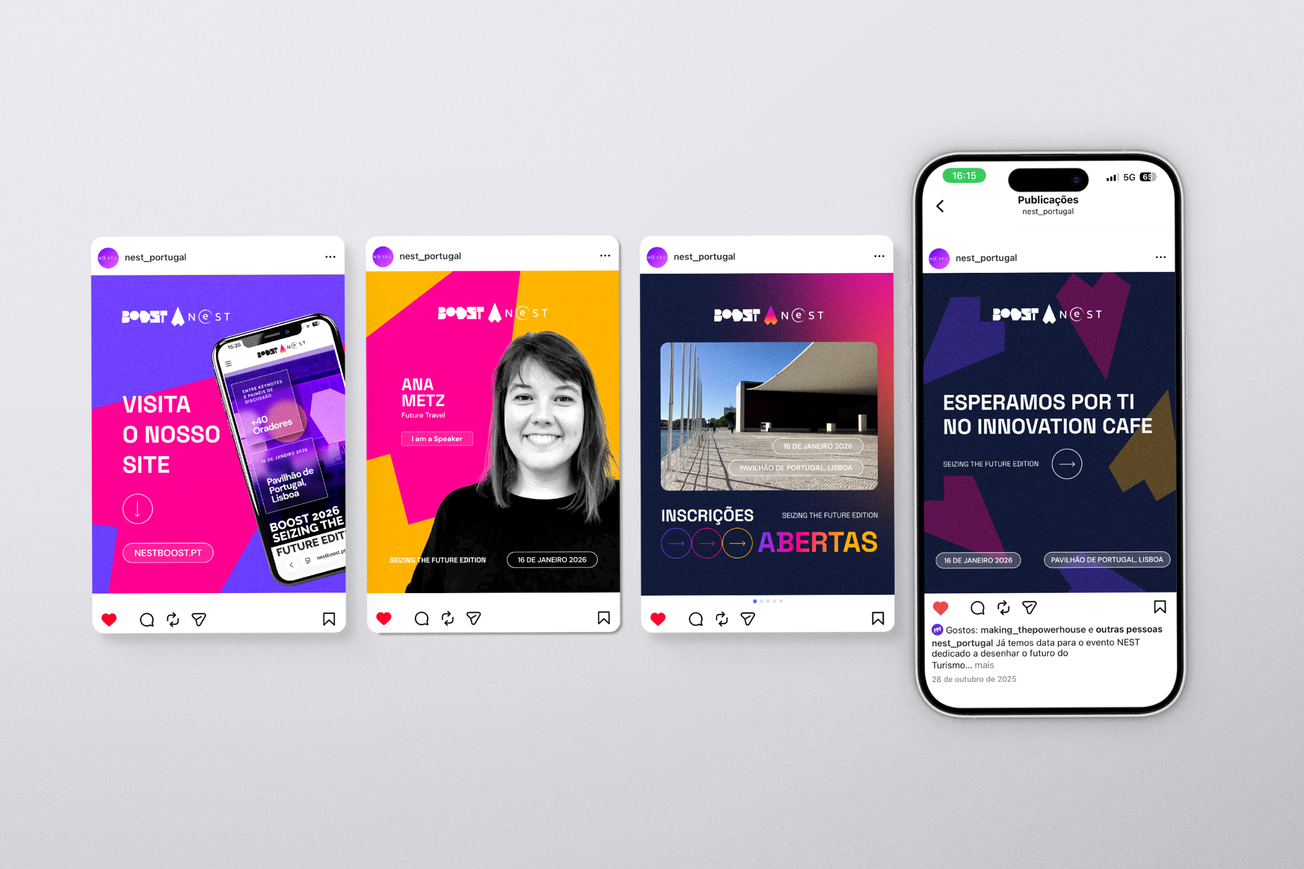 Quando o NEST Centro de Inovação do Turismo nos desafiou a conceptualizar e produzir o BOOST 2026, o objetivo era claro: criar um momento de referência para a indústria do turismo em Portugal — um espaço onde inovação, criatividade e estratégia convergissem numa experiência verdadeiramente única.